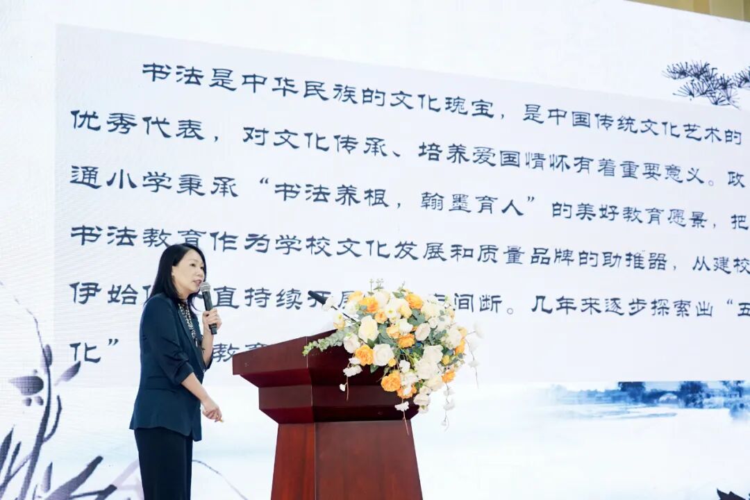 书法讲座交流环节,温江区政通小学校副校长潘华为大家带来了《打造书法教育特色,提升学校办学品位》的书法讲座。温江区政通小学校邓小雪老师分享了《以书载道,审美育人——家校共育、如何写好规范汉字》的教学经验。